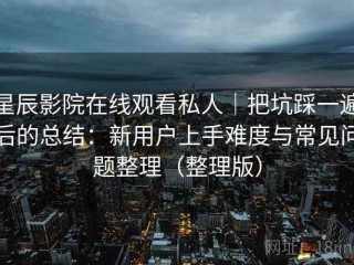星辰影院在线观看私人|把坑踩一遍后的总结:新用户上手难度与常见问题整理(整理版)